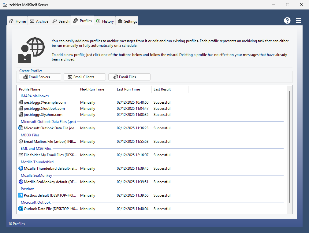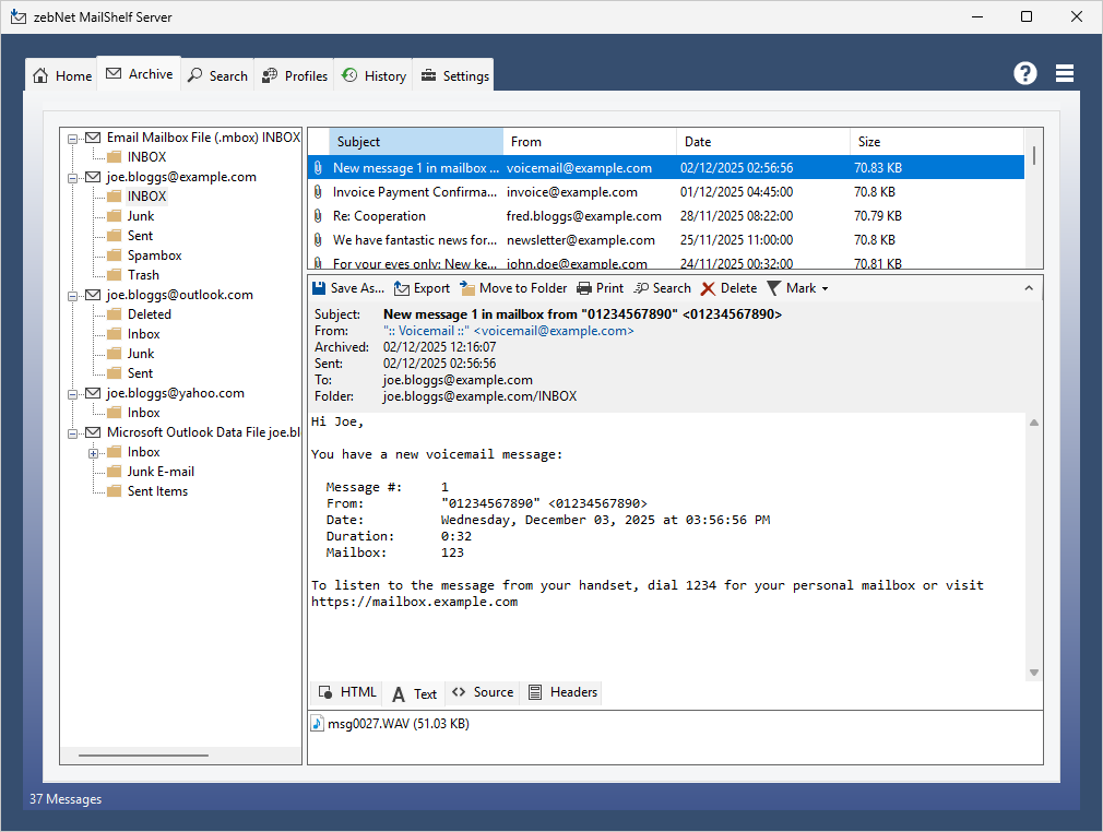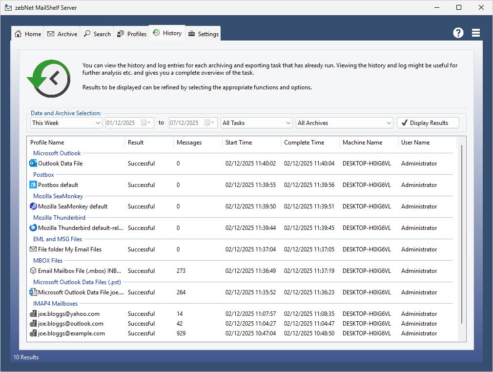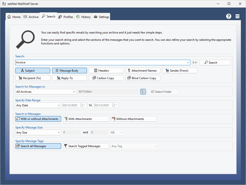 Have a look at the screenshots to get a first impression of what working with zebNet MailShelf Server looks like. Each image is only a thumbnail and you can click on an image to enlarge it.