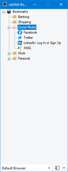 Have a look at the screenshots to get a first impression of what working with zebNet Bookmark Manager looks like. Each image is only a thumbnail and you can click on an image to enlarge it.